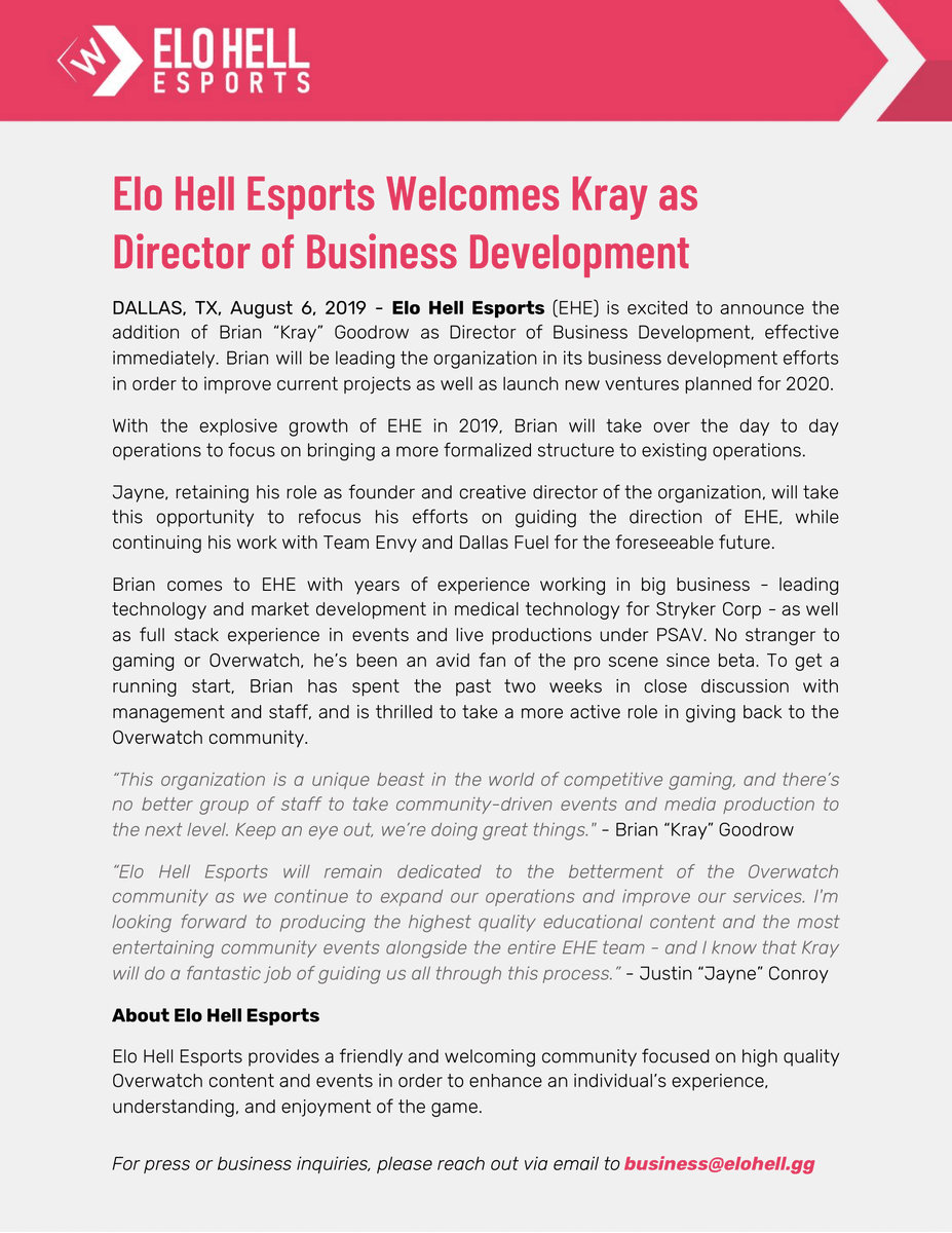 We’re excited to welcome @kraybaybay to the Elo Hell team, who will be taking over from @AskJayne in managing business operations! pic.twitter.com/2JTc6SXgGQ