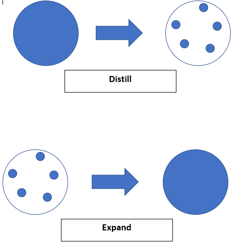 3/ I argue that Distilling and Expanding are opposite operations. Expanding takes the existing borders of an idea and fills in more territory. Distilling takes the existing borders of an idea and removes territory while making sure the borders are still obvious.pic.twitter.com/LDJal7Shp8