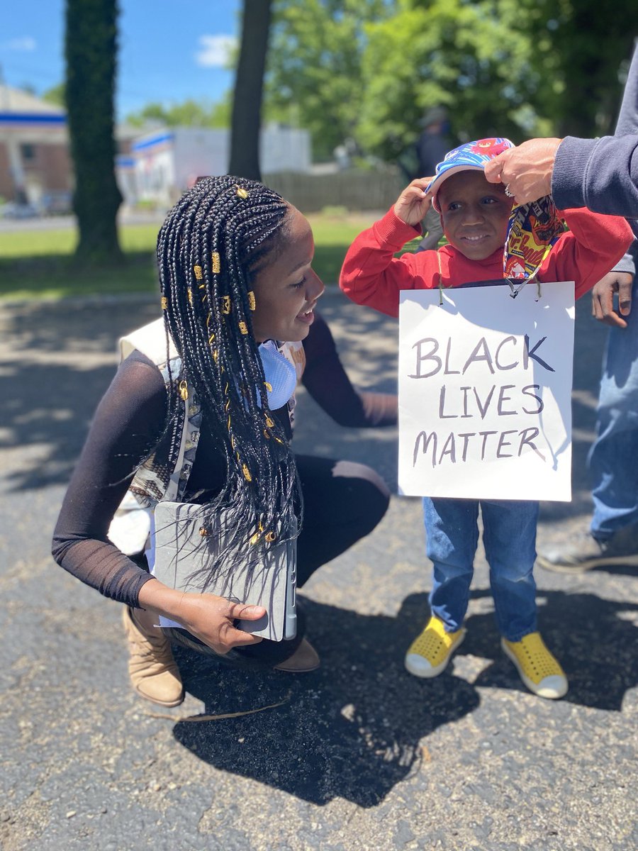 We were met with opposition in Hamburg as we marched. Ppl screamed, “All Lives Matter” with their middle fingers as they drove by. I started to feel discouraged-then I saw this kid and my frustrations melted away. I remembered why we march. He made my day. #littleblackboysmatterpic.twitter.com/2oOpqh7khx
