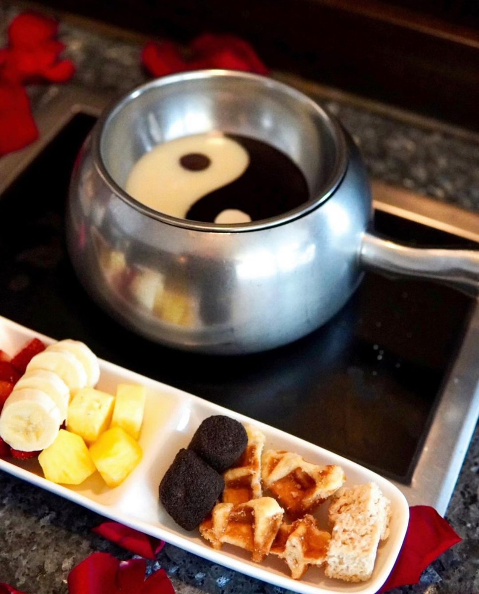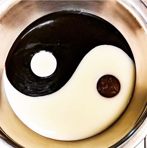 Finding balance at the end of a long week with our Yin & Yang Chocolate Fondue. This blissful fondue features complex dark chocolate swirled with sweet white chocolate.