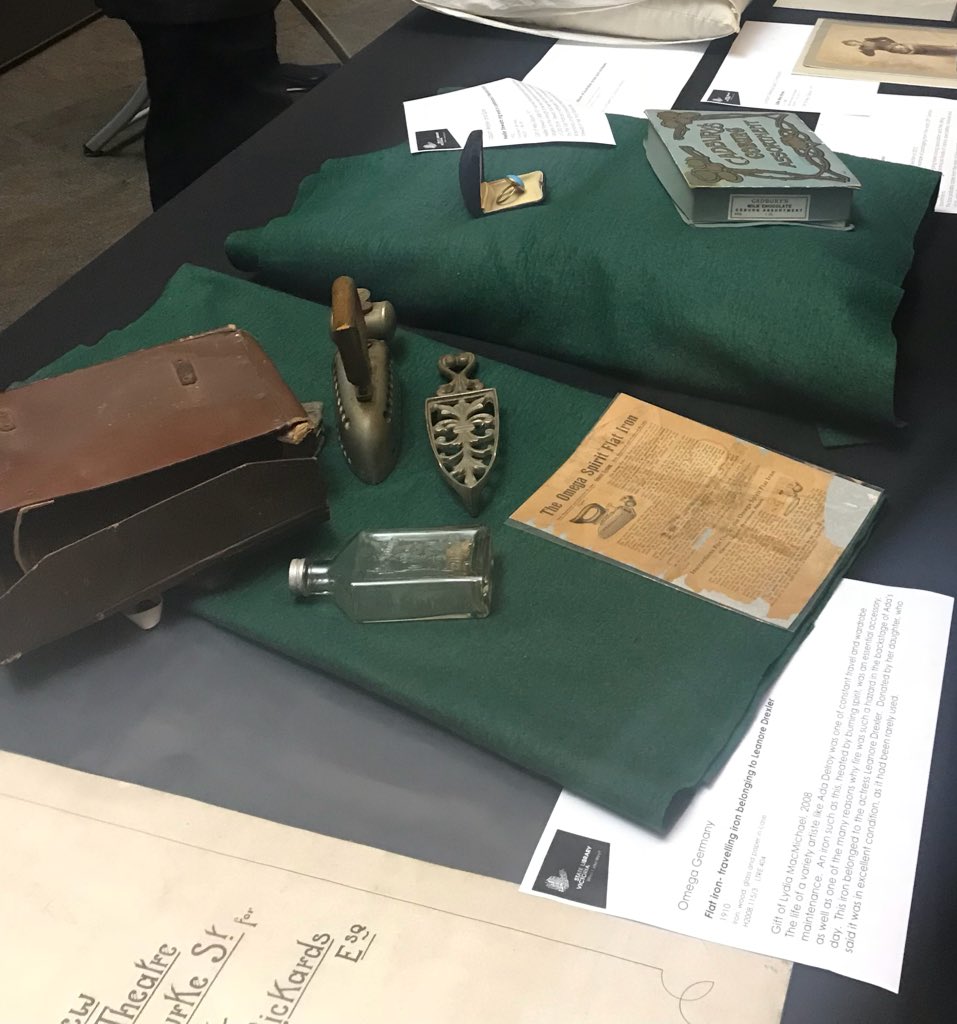 @reallykazcooke &@MeowTopia chat about women and vaudevillian history last night, & to view collection items relating to Kaz’s brilliant book on Ada Delroy too, thanks to@Library_Vic! The tiny iron with bottle of metho was a fave.pic.twitter.com/U7gl9P93pG