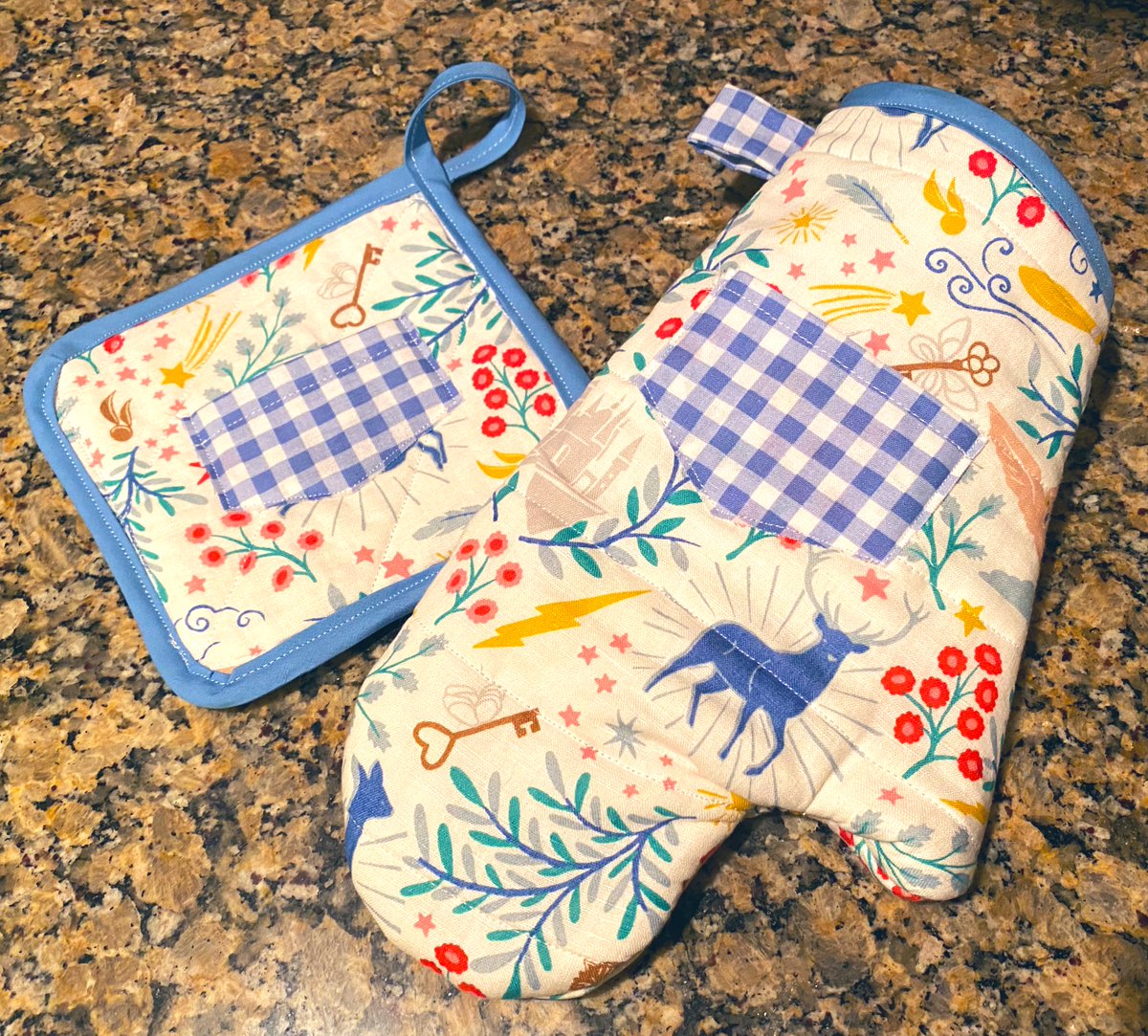 I just made the cutest Harry Potter pot holder and oven mitt our of remnant fabric from a child’s dress and I just
