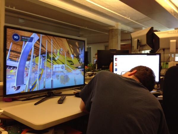 Here's @TomMcShea tilting his head sideways while playing an extremely disorienting upside-down Trials Fusion level.pic.twitter.com/jM5UuwlGEB
