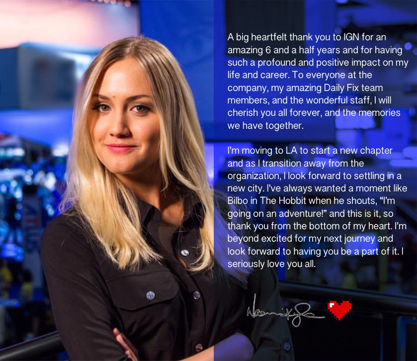 Today is my last day @IGN, I'm moving to Los Angeles! See attached image above for more.
