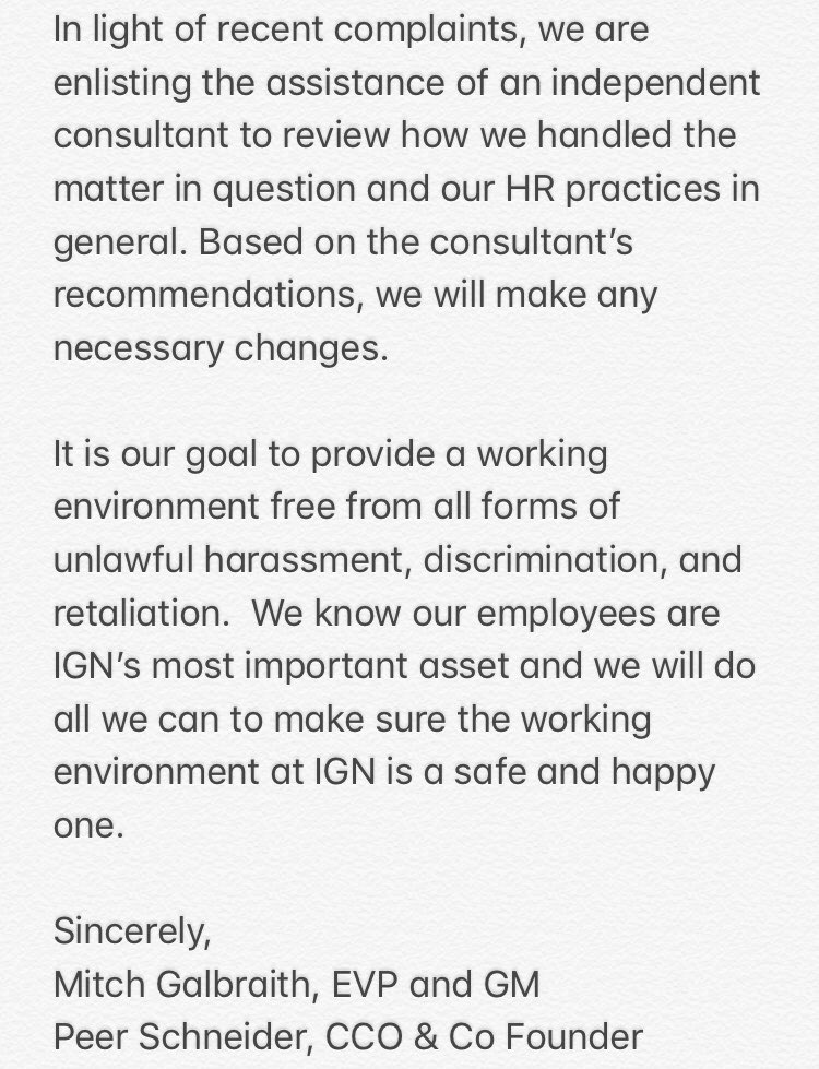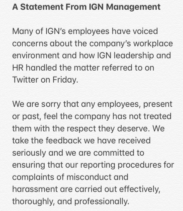 An important statement from IGN management on next steps.pic.twitter.com/tQdevt4ZEd