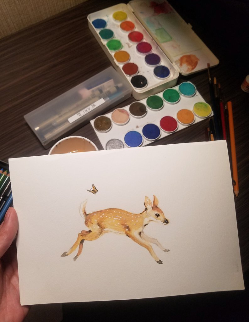 When I was a little girl, my mom would sing me a lullaby about a butterfly chasing a deer, so I painted her this for mother's day.
