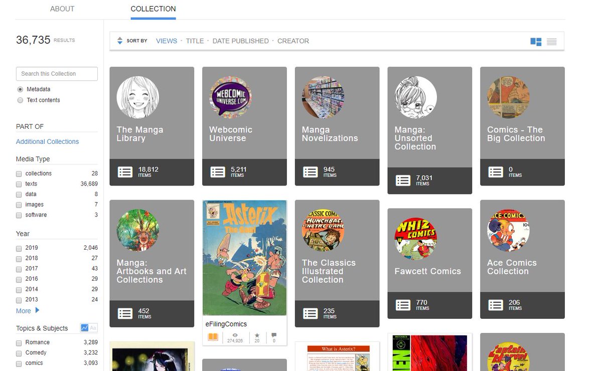 Manga: Artbooks and Art Collections https://archive.org/details/manga_artbooks … Comic Books and Graphic Novels https://archive.org/details/comics Bookmark these two links - it's full of content.