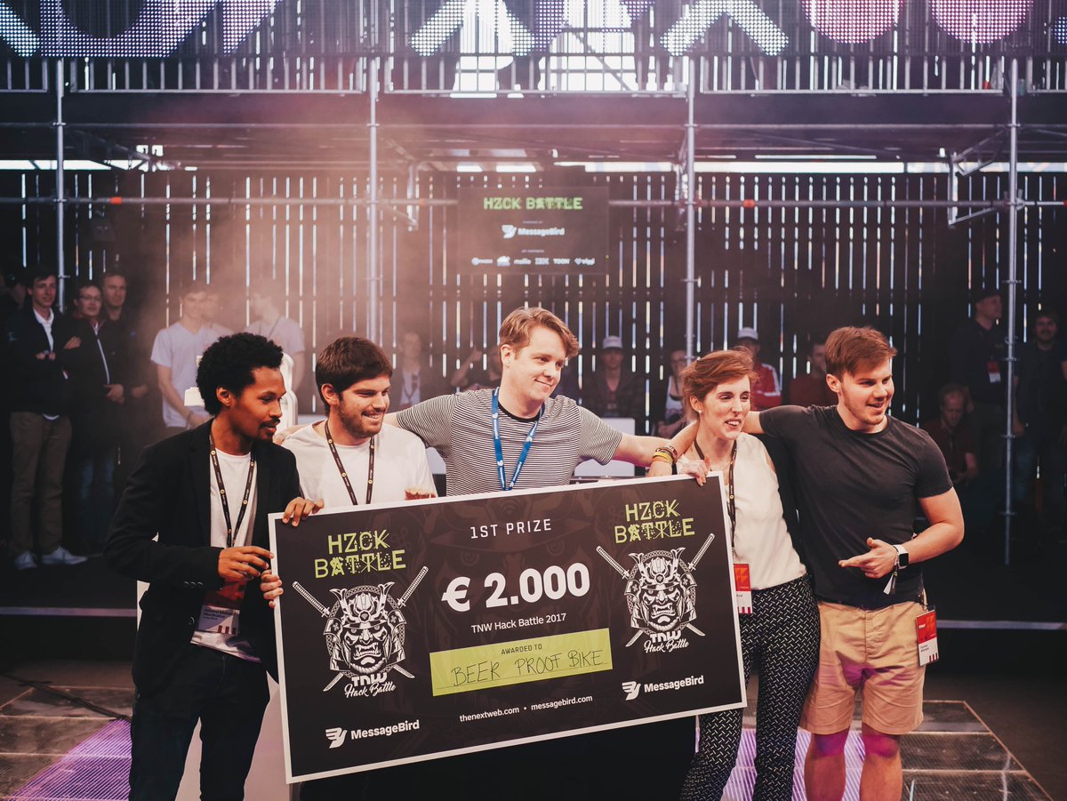 #TNWHackBattle winners: Beer Proof Bike!!! Fun application of our SMS API - job well done