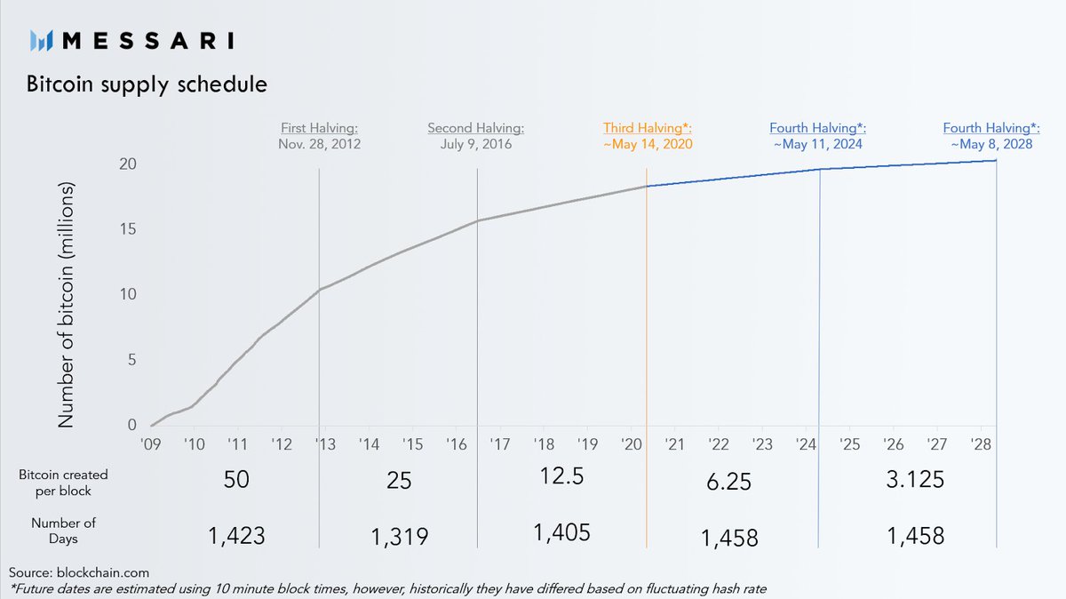 In May 2020 at block 630,000, the 3rd halving will take the $BTC block reward from 12.5 BTC to 6.25 BTCpic.twitter.com/3WVbsG0ome