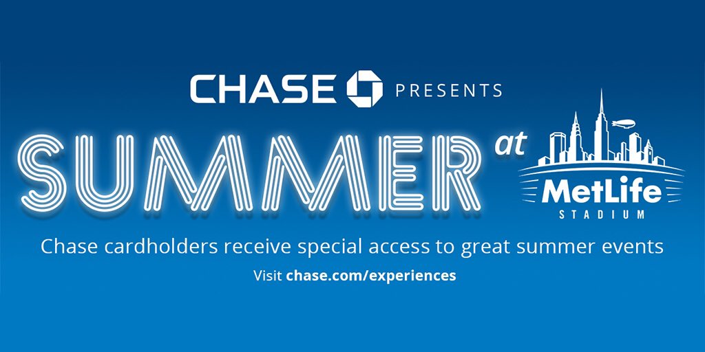 @Chase Presents Summer at MetLife Stadium continues tomorrow with@SupercrossLIVE! Visit http://bit.ly/ChaseExperiences … for more information.pic.twitter.com/z54FPBjufi