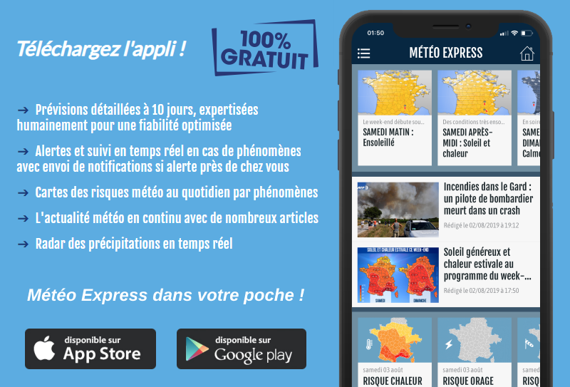 N'hésitez pas à télécharger l'appli Météo Express ! C'est 100% gratuit !