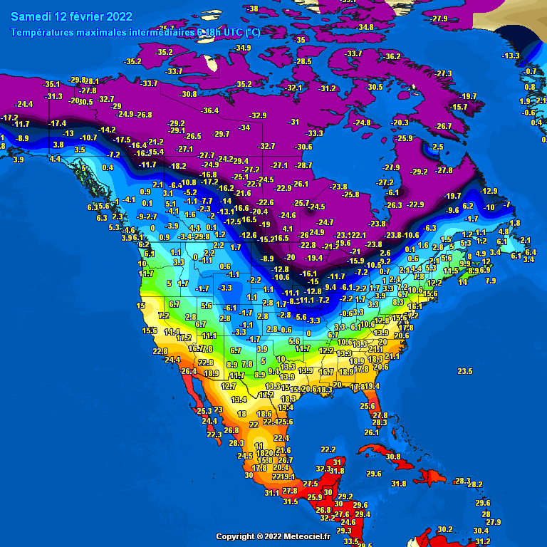 #EtatsUnis. Une#douceur anormale règne entre la#Californie et l'#Oregon alors que le#froid est marqué près des Grands Lacs avec par exemple pas plus de -22.8°C à International Falls dans le#Minnesota. Carte :@meteocielpic.twitter.com/Ztz1F1Vjtn