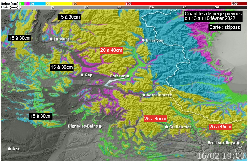 Plus de 30-40cm de #neige sont attendus entre dimanche soir et mardi sur le Sud des#Alpes, un épisode très attendu dans un hiver trop sec. Celui-ci devrait toutefois laisser place à un temps plus#doux et de nouveau#sec par la suite. >> http://bit.ly/3BiUIqH Carte : skipasspic.twitter.com/P5rN55hHN7