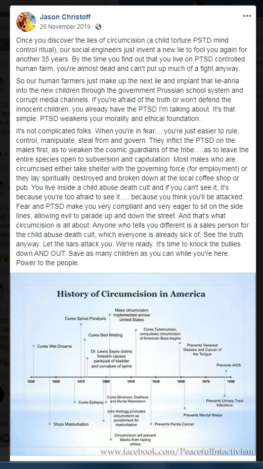 "Once you discover the lies of circumcision (a child torture PSTD mind control ritual), our social engineers just invent a new lie to fool you again for another 35 years."pic.twitter.com/02uOXlVme6