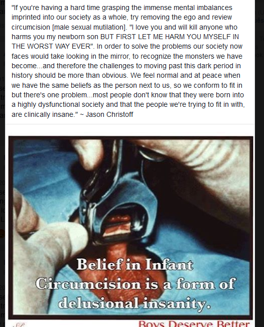 "Involuntary infant circumcision is cruel and barbaric, medically unnecessary, and a violation of human rights. It's hard to believe this cruel horror is still practiced anywhere in the world, much less in the United States, which is supposedly a "developed" country."~C. Saunderspic.twitter.com/79Oj3Yxdbi
