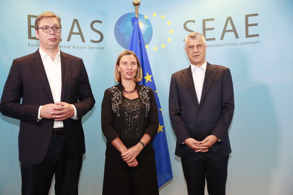 HRVP @FedericaMog meeting with Presidents@predsednikrs@avucic &@HashimThaciRKS in the context of#EU facilitated#Dialogue. Brussels, now.#Serbia#Kosovo#WesternBalkanspic.twitter.com/wutfEm1HX0