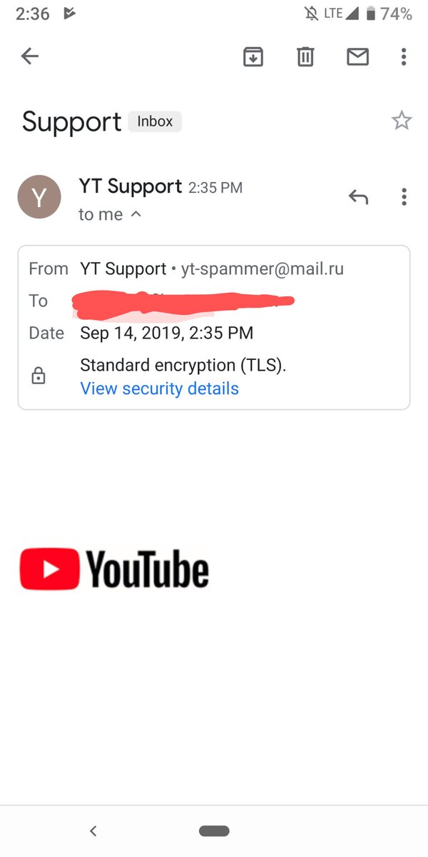 Hey @TeamYouTube this email is impersonating you. Be careful folks #youtubepic.twitter.com/TviBfH2XFf