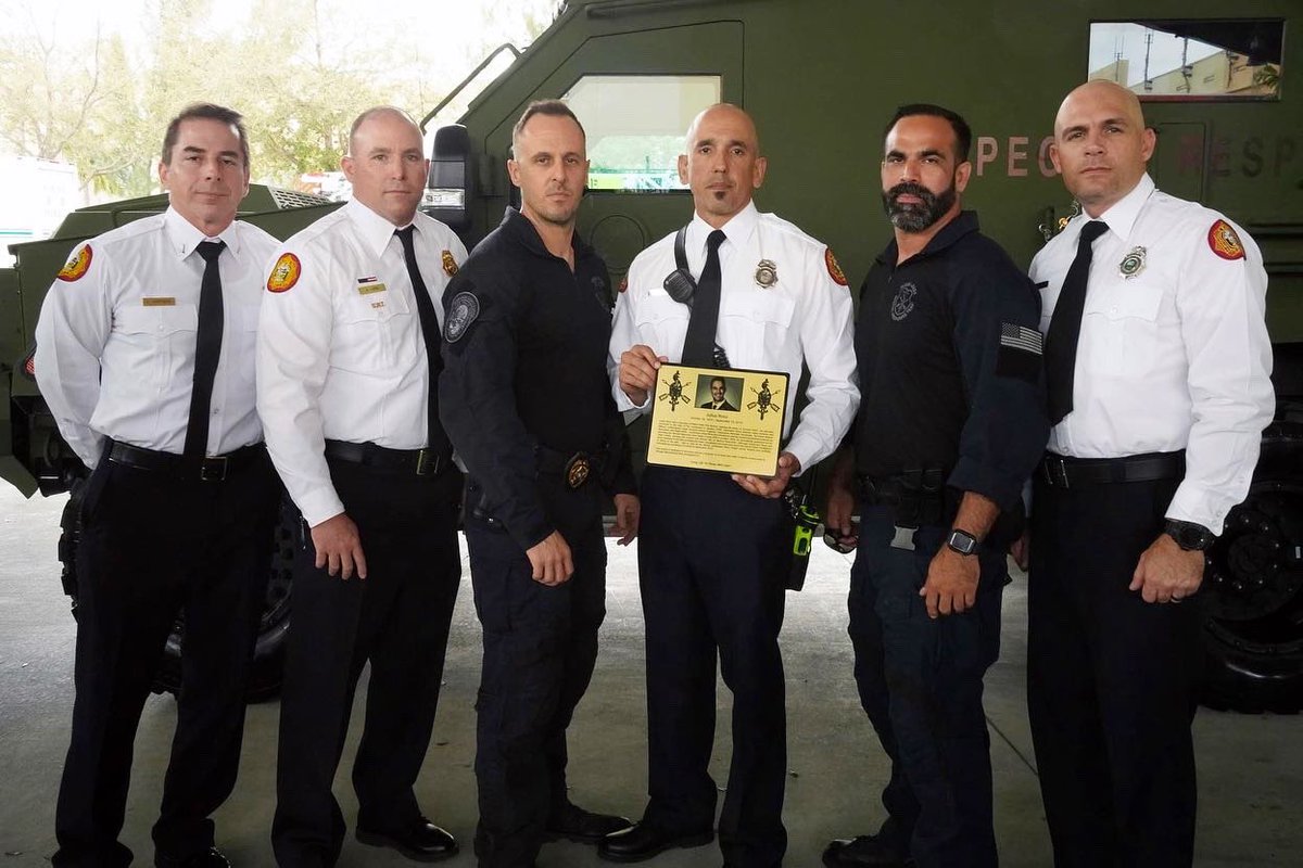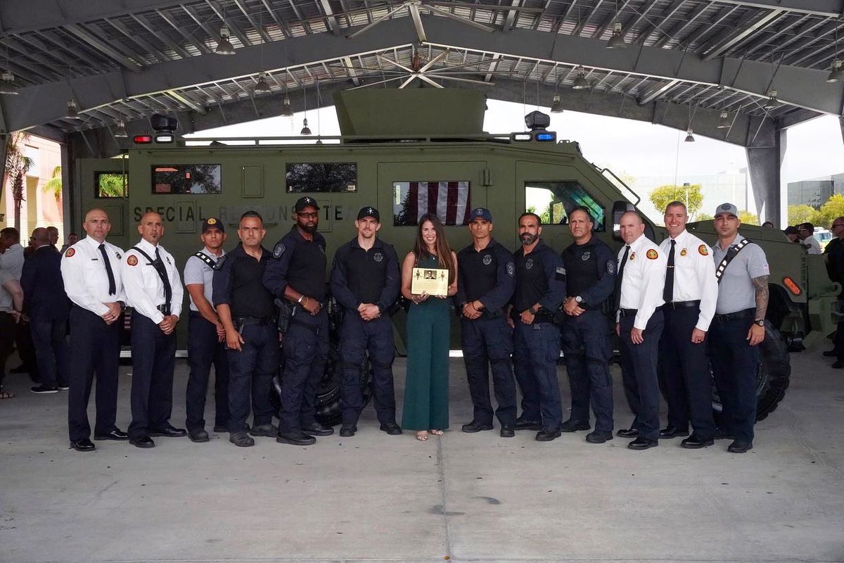 @MiamiDadePD held a special ceremony dedicating their new Special Response Team (SRT) vehicle in memory of#MDFR Lt. Julius Perez, a Tactical Paramedic part of the SRT who passed from cancer in Sept. 2015.