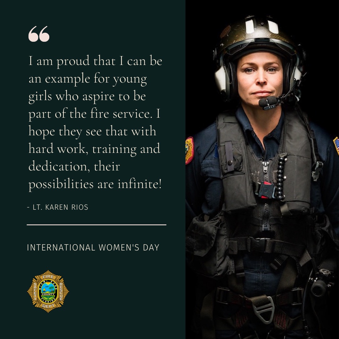 #InternationalWomensDay,#MDFR celebrates women in the fire service that proudly serve Miami-Dade County. For Lt. Karen Rios, serving the community is a way to inspire future generations of firefighters & to make a positive impact. https://bit.ly/35ZJkEH pic.twitter.com/ngU7V0JB4W