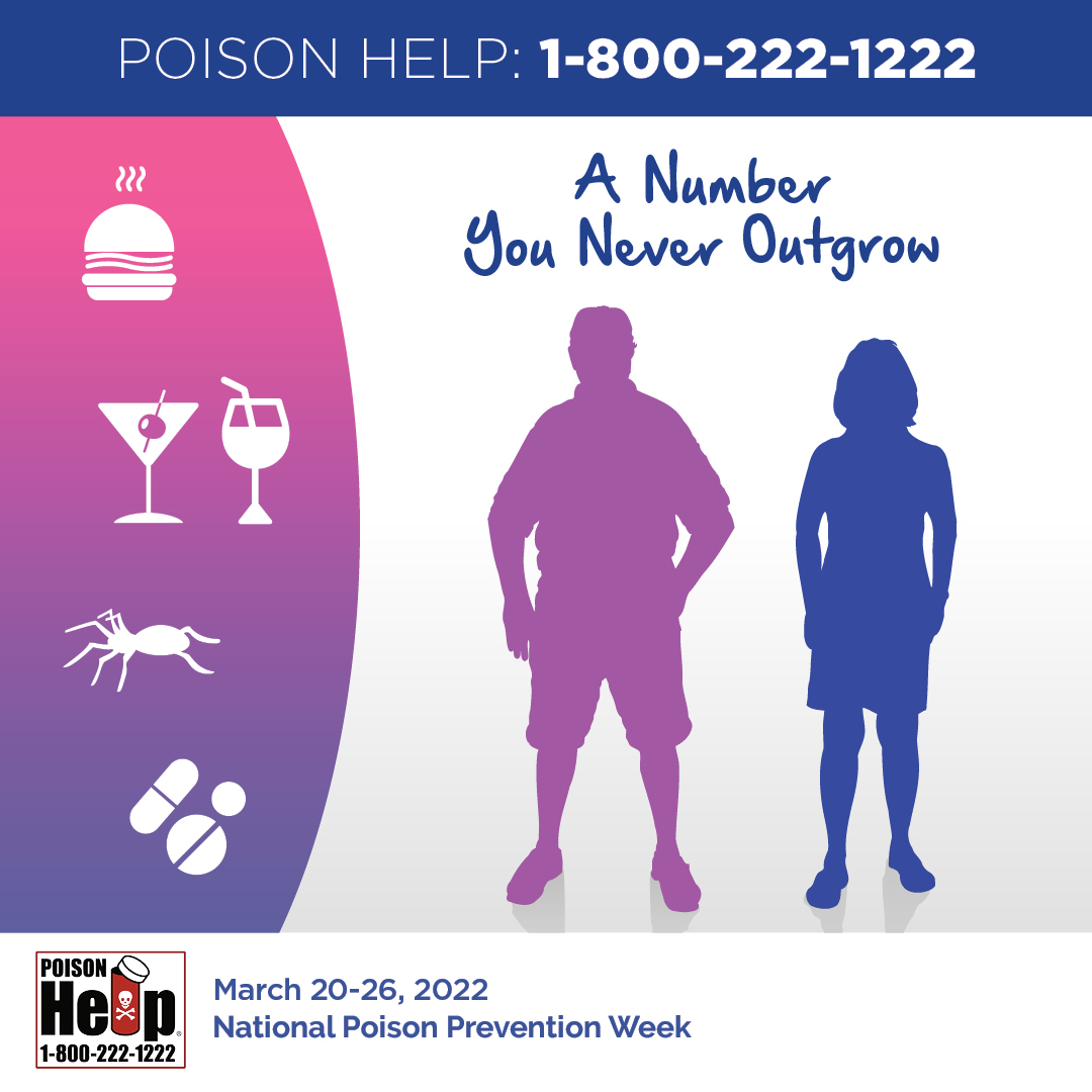 It's Poison Prevention Week! No matter your age, every day we use products at home & work, many of which can be poisons. Save the toll-free Poison Help line 1‑800‑222‑1222 on your phone to connect with your local poison center in case of a poison emergency.