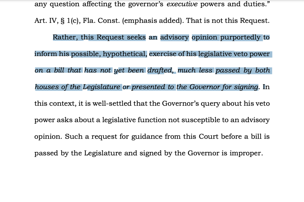 @GovRonDeSantis' veto authority, arguing court should address his issue (whether lawmakers need to retain four Black districts - or not as the gov wants) because of time constraints and his need to be informed before signing or veto.pic.twitter.com/OXUYU2oYRP