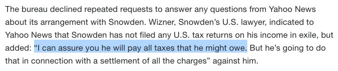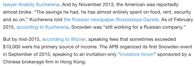 To be fair, $ may be tight for Sno. In Nov 2013 his Russian lawyer said he was almost broke. https://finance.yahoo.com/news/edward-snowden-making-most-digital-000000490.html …pic.twitter.com/crSUHEQOYM