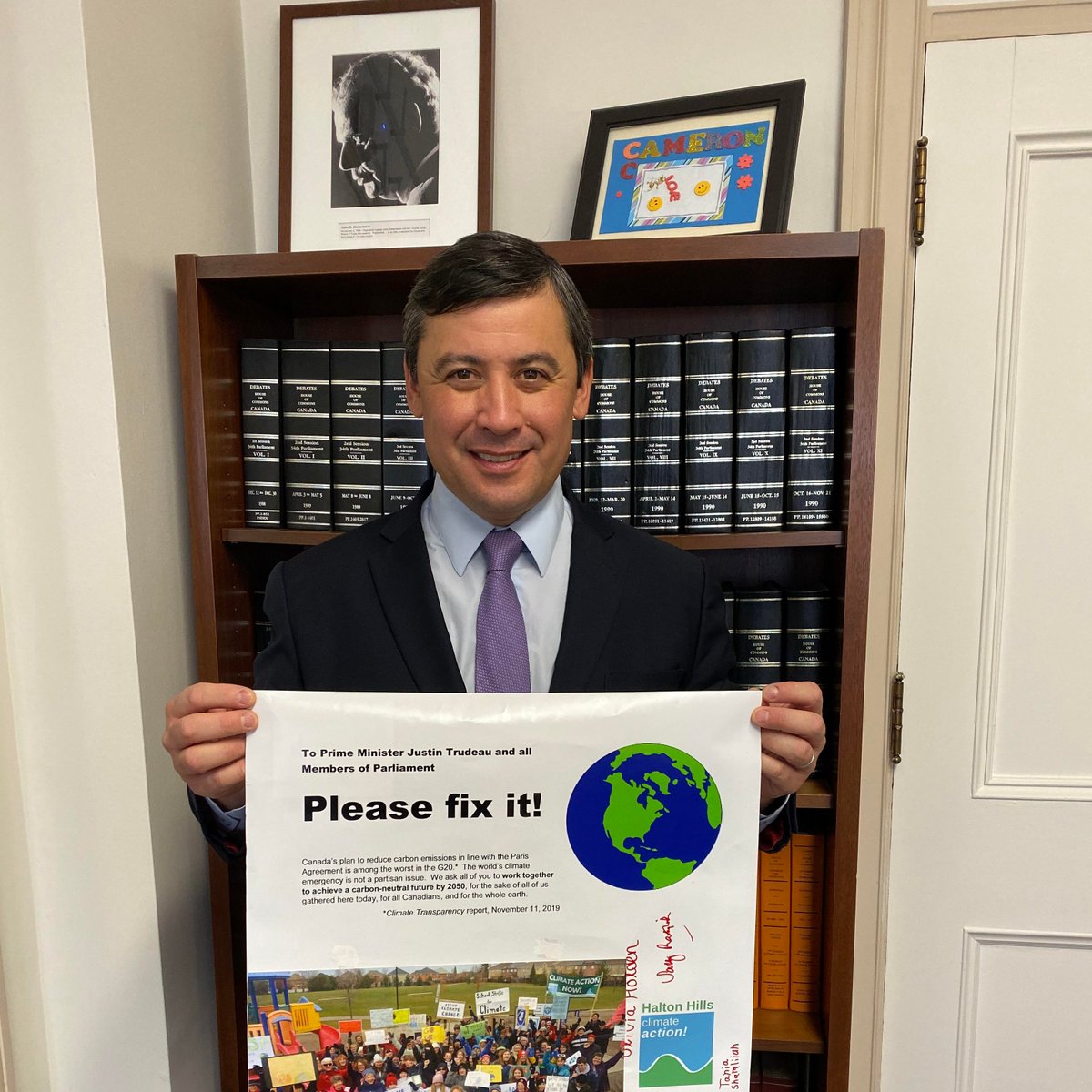 #climatechange. The poster contains signatures from numerous constituents. I will be forwarding it directly to Prime Minister@JustinTrudeau.#HaltonHillspic.twitter.com/Icyb6cOswu