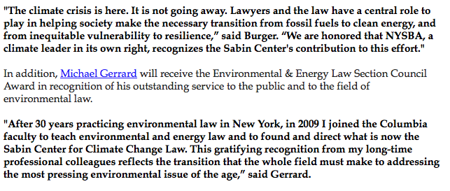 It was a great pleasure, and a true honor, to receive this award from the NYS enviro law bar. Thanks to all past and present fellows, interns, research assistants, visiting scholars, project partners, strategic collaborators,