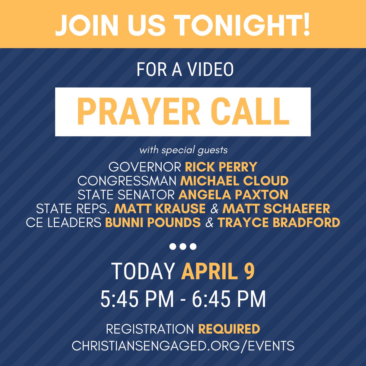 Honored to be praying tonight with @GovernorPerry and others on a statewide call for our nation and Texas! Join us at 5:45 pm.https://twitter.com/PrayVoteEngage/status/1248283738808766464 …
