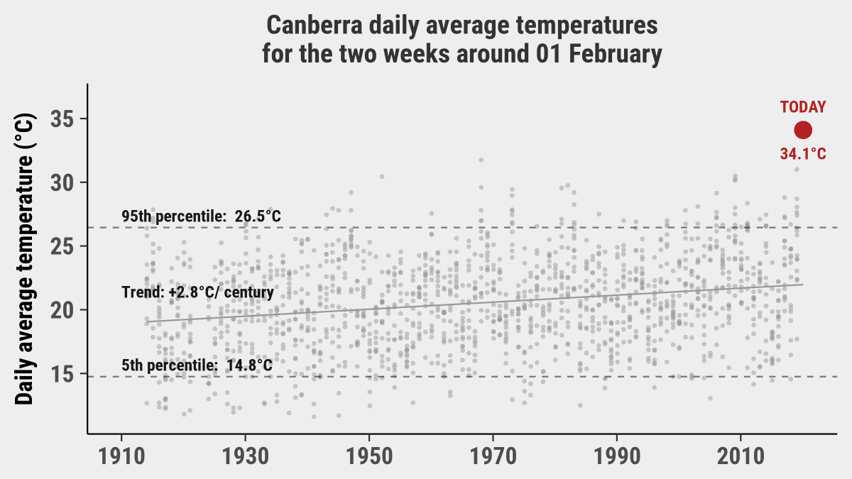 Canberra Is it hot right now? >> Canberra temperature off the bell curve <<