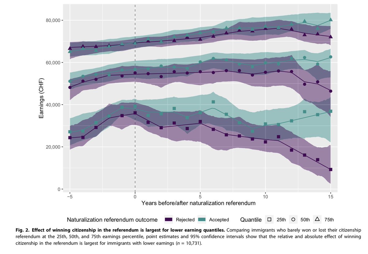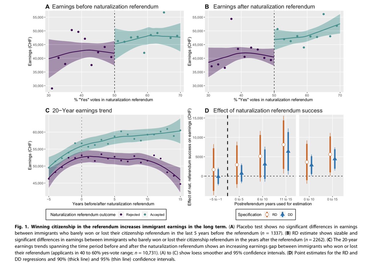 What happens when immigrants become naturalized citizens? Over the next 15 years, their earnings increase by about $5000 as a direct result. + these gains are even larger for more marginalized immigrants.