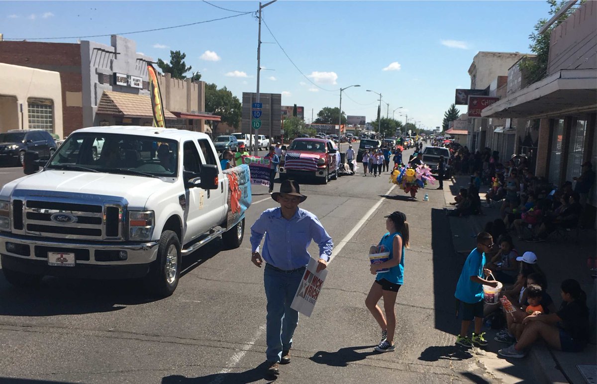 Mick running alongside a float at the #DemingDuckRacepic.twitter.com/X9SdOsaA6G