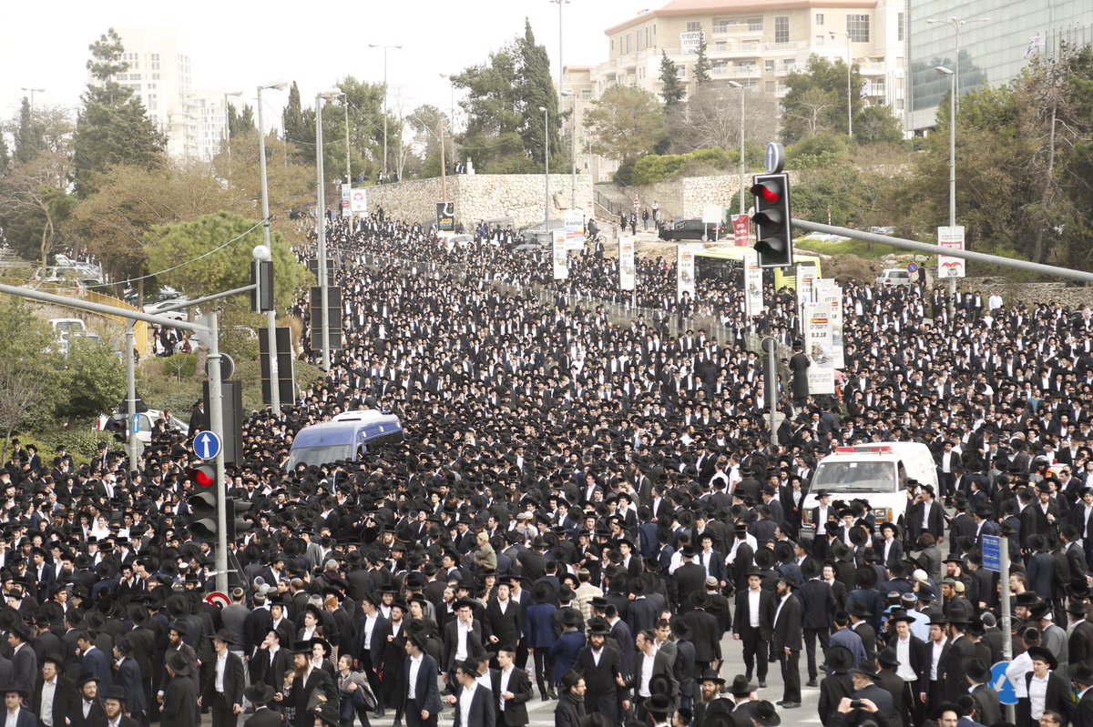 Tens of thousands of people take part in funeral of rabbi in Jerusalem today. Police units and border police securing the area.pic.twitter.com/ihpuY0jyYe