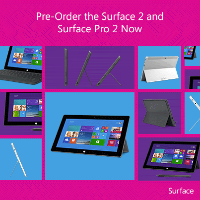 "@Microsoft: Pre-Order now available for #Surface 2 and Surface Pro 2. Order yours today: http://msft.it/6019wNnf pic.twitter.com/IpEzz9zJEX"