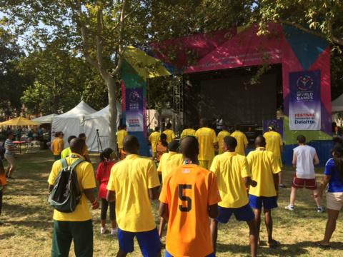 #BeBrave, #ReachUpLA This is the best way to start the day - warming up with Special Olympics athletes!pic.twitter.com/tC4AvWXO0Z