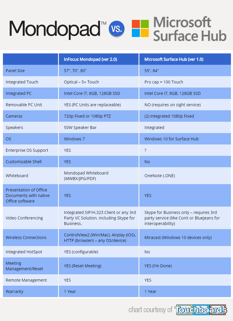 @13pines A live demo is probably your best way to go. Can answer Qs. Can run S4B & connect OD. IR touch...for now. http://www.infocus.com/mondopad-live-demo …