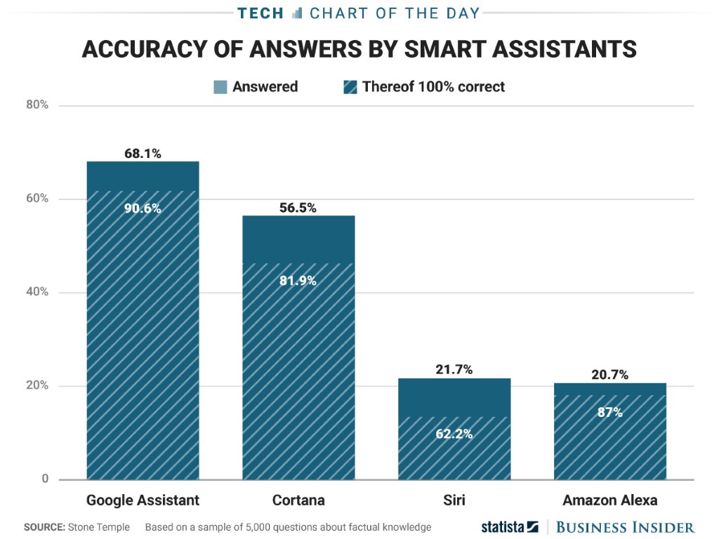 Statista mid-2017 comparison of voice assistants. Siri and Alexa completely fail at assisting. https://www.statista.com/chart/9580/how-smart-are-smart-assistants/ …pic.twitter.com/x1OWJXAIpy