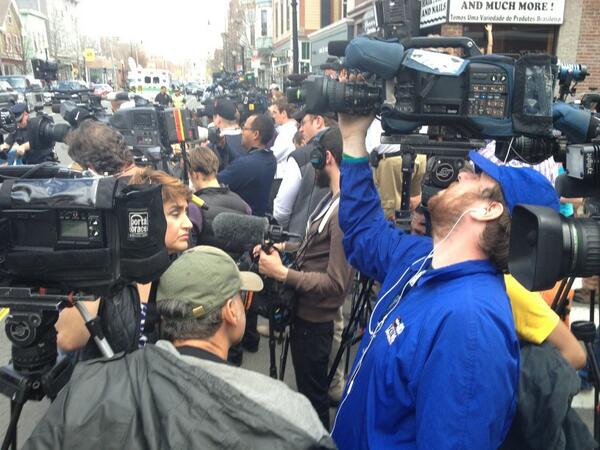 Am in the middle of this crush of media... Police have moved us closer to home... waiting... #cnn #cambridgepic.twitter.com/vdI4b54osE