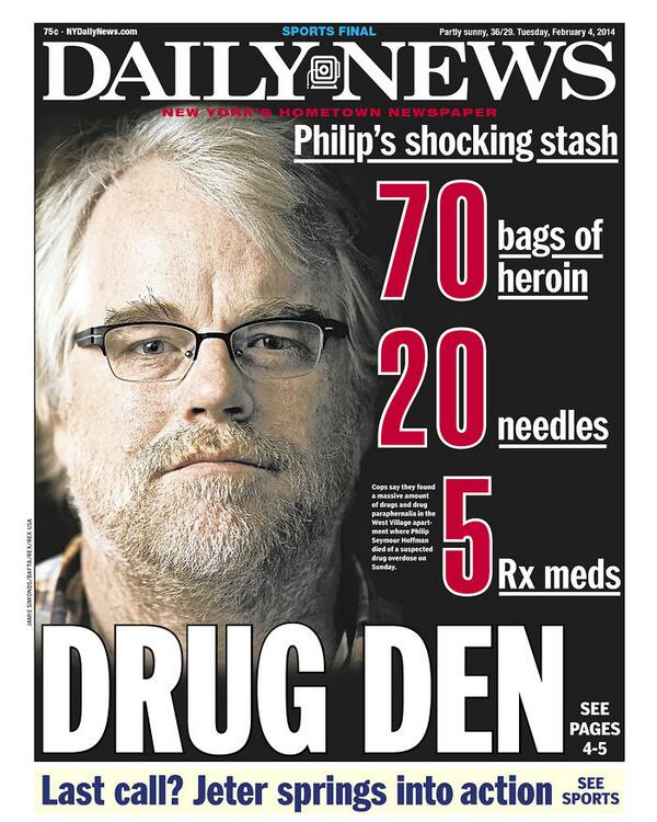 “@keithboykin: Today's New York Daily News cover on Philip Seymour Hoffman. pic.twitter.com/ZKEMdqAYOX” >>sad.