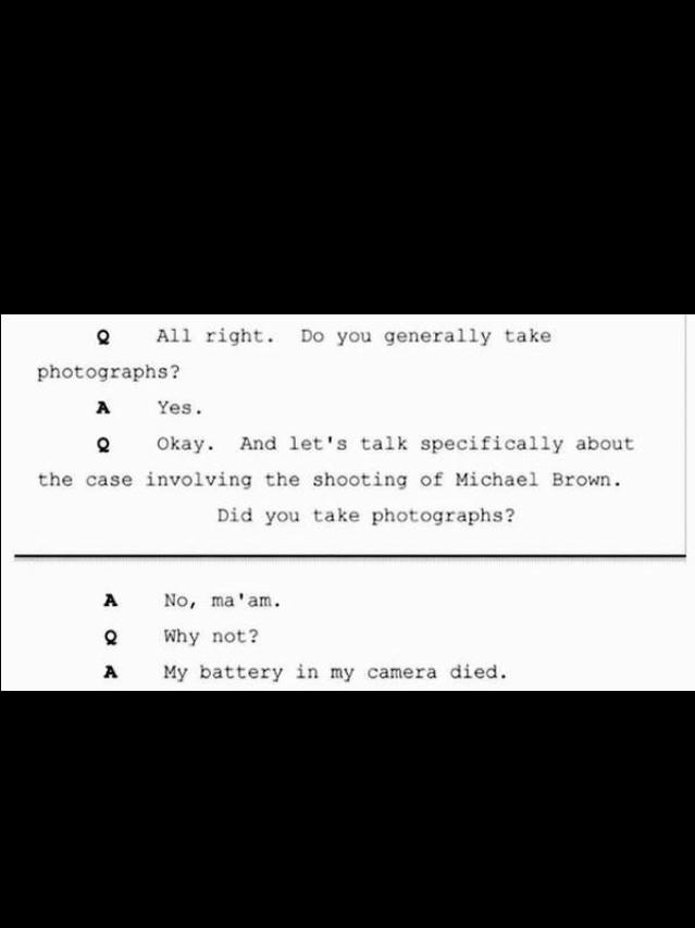 the fix was in MT “@MidwinCharles: Medical examiner didn't take photos at scene; ran out of batteries pic.twitter.com/BrnwSXvfoV” #ferguson