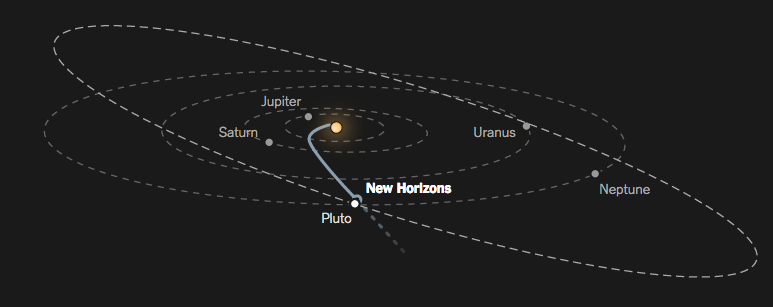Today the New Horizons spacecraft is as close to Pluto as Earth is to the sun, by @13pt. http://nyti.ms/1ybHzdS pic.twitter.com/6BcNmf2Z79