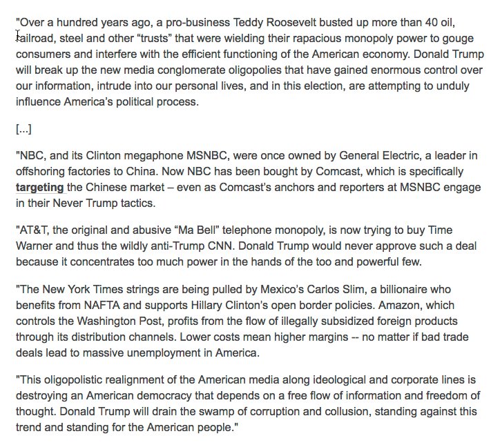 Trump campaign releases a wild statement saying media companies are colluding against him and he will break them up http://mm4a.org/2eB176K  pic.twitter.com/qIWPvMPC4F