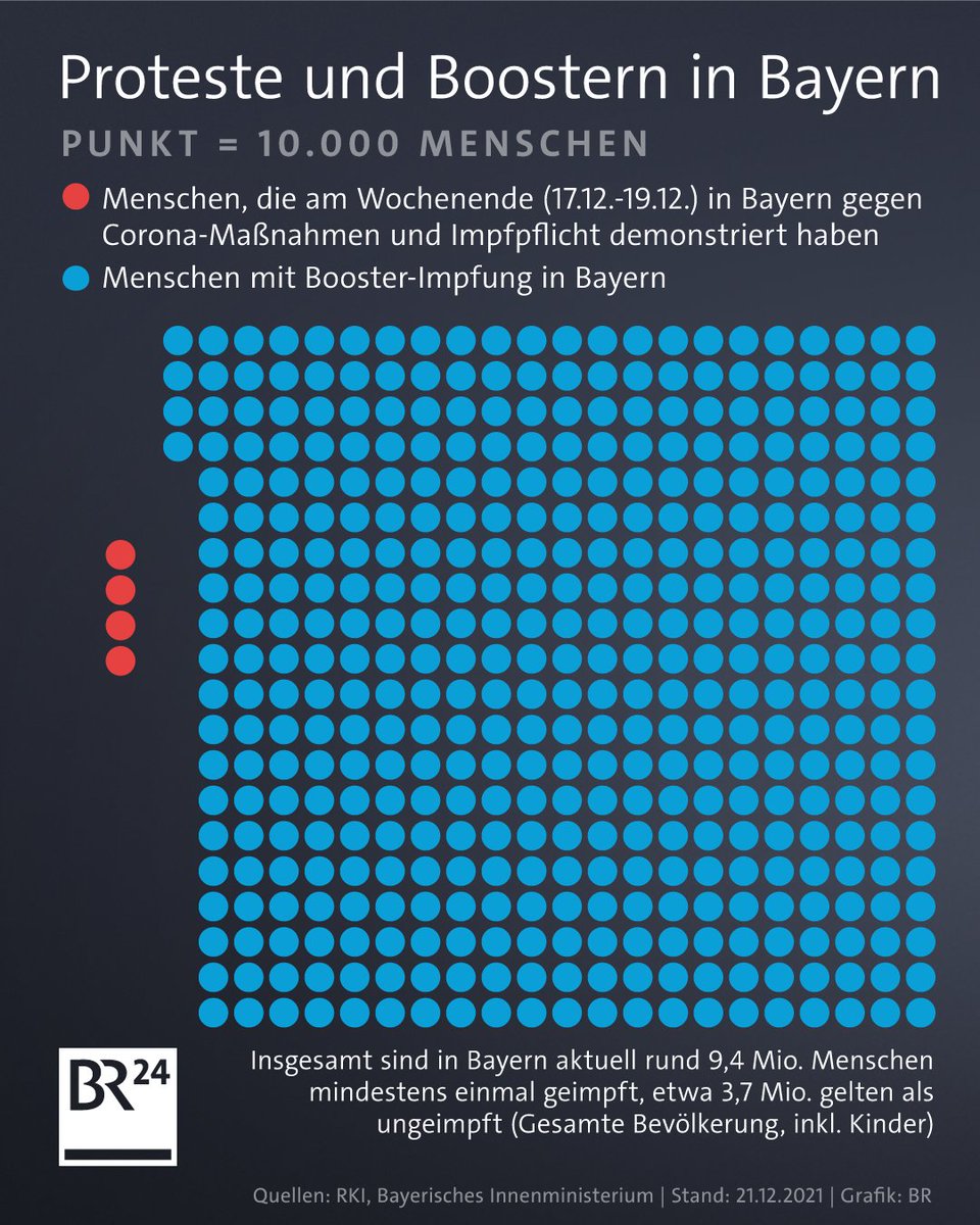 Gegner der #Corona-Maßnahmen und des Impfens machen in #Bayern ihrem Unmut Luft: Am Wochenende haben laut dem bayerischen Innenministerium mehr als 41.000 demonstriert. Derweil sind bereits 4,2 Mio. Menschen in ganz Bayern zur #Booster-Impfung gegangen. https://www.br.de/nachrichten/bayern/booster-und-co-das-ist-der-stand-der-impfungen-in-bayern,Ss7XVFR …pic.twitter.com/z8OiRnhKpY