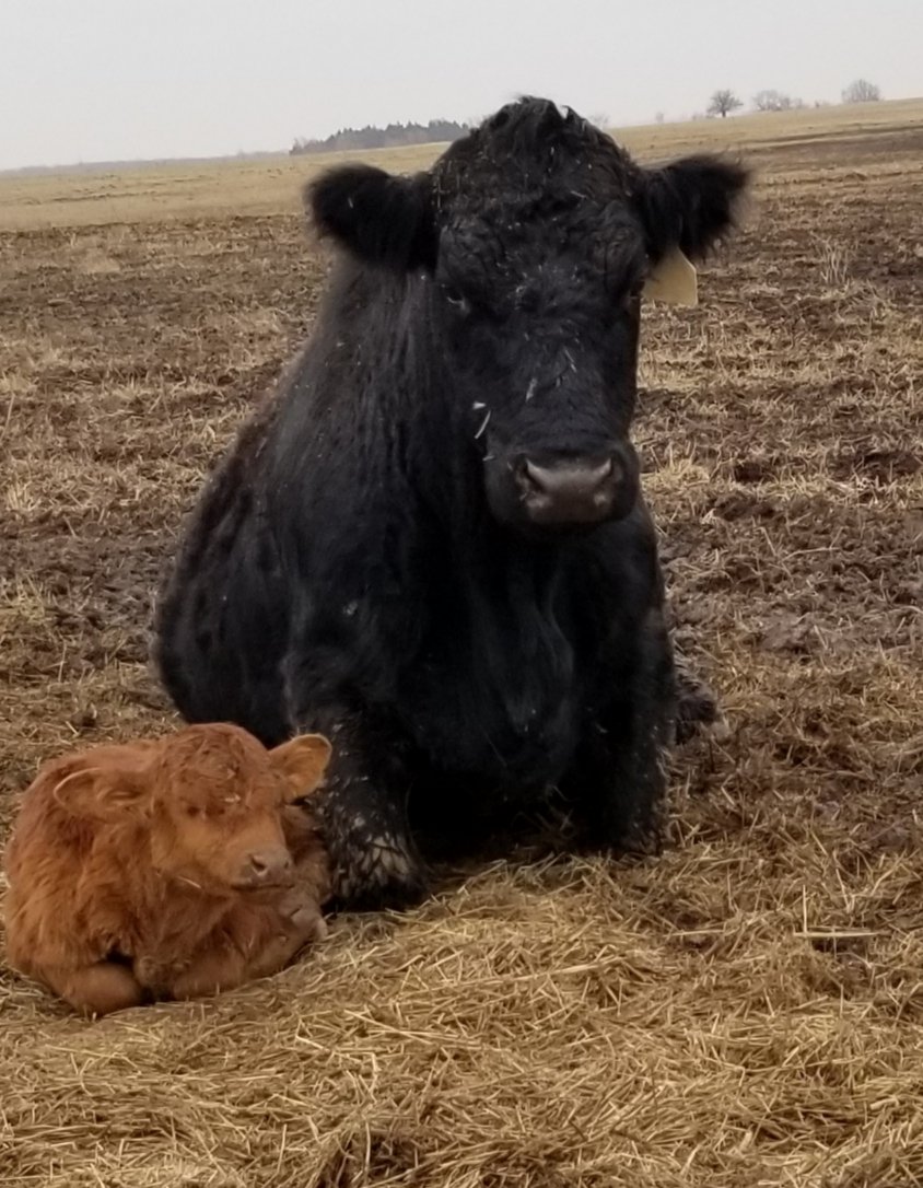 I'm thinking she'll drop this calf soon. Odds it'll be: A) when it's 30+ degree temperature drop... B) in the mud C) twins D) all the above