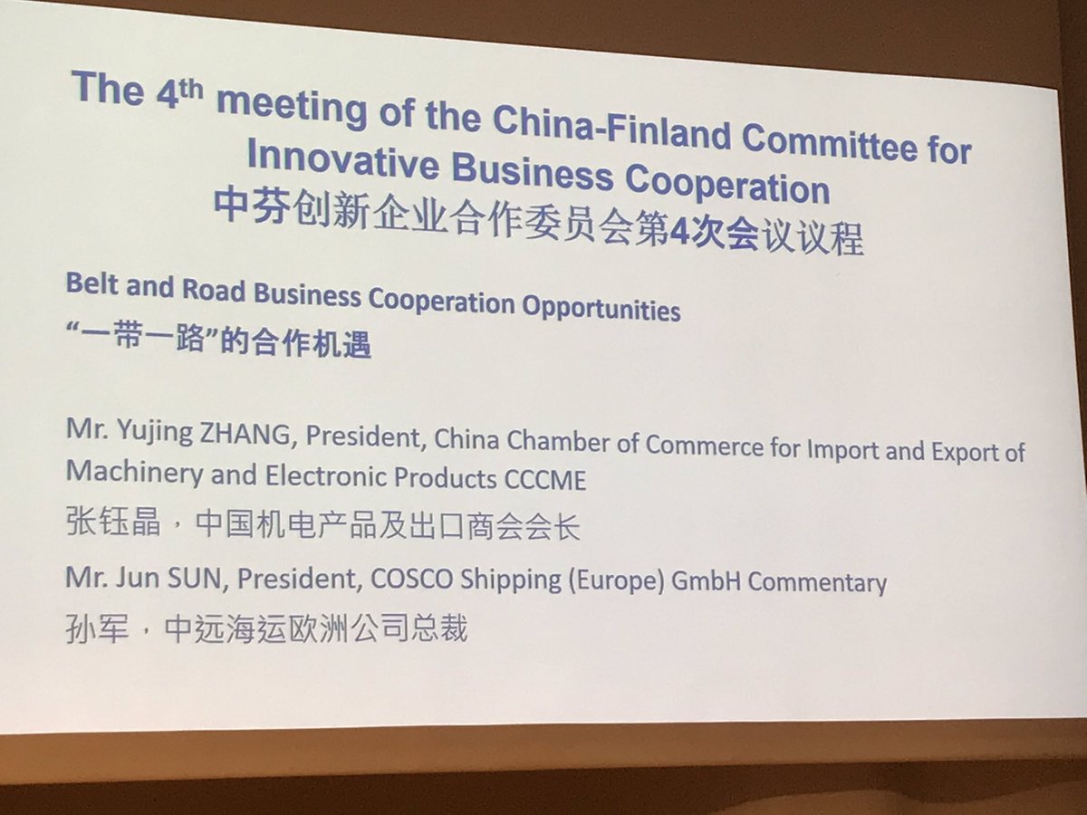 #China-#Finland Committee for Innovative Business Cooperation meeting at@finlandiatalo in#Helsinki: Mr. Yujing ZHANG and Mr. Jun SUN highlighted the#BeltandRoad business cooperation opportunities.@BusinessFinland@Ulkoministerio@TEM_uutiset@Elinkeinoelamapic.twitter.com/McGgRMvX0q