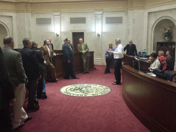 Before Morning Hour, it was Story Hour in the Arkansas Senate as Governor Beebe told old Senate anecdotes. #arlegpic.twitter.com/BVpA1zJYYU