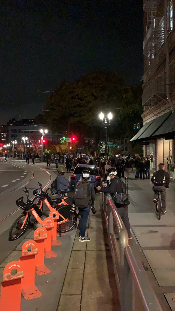 Law enforcement has retreated. American flag now on fire at 10th & Harvey Milkpic.twitter.com/m1CqFtcyoL