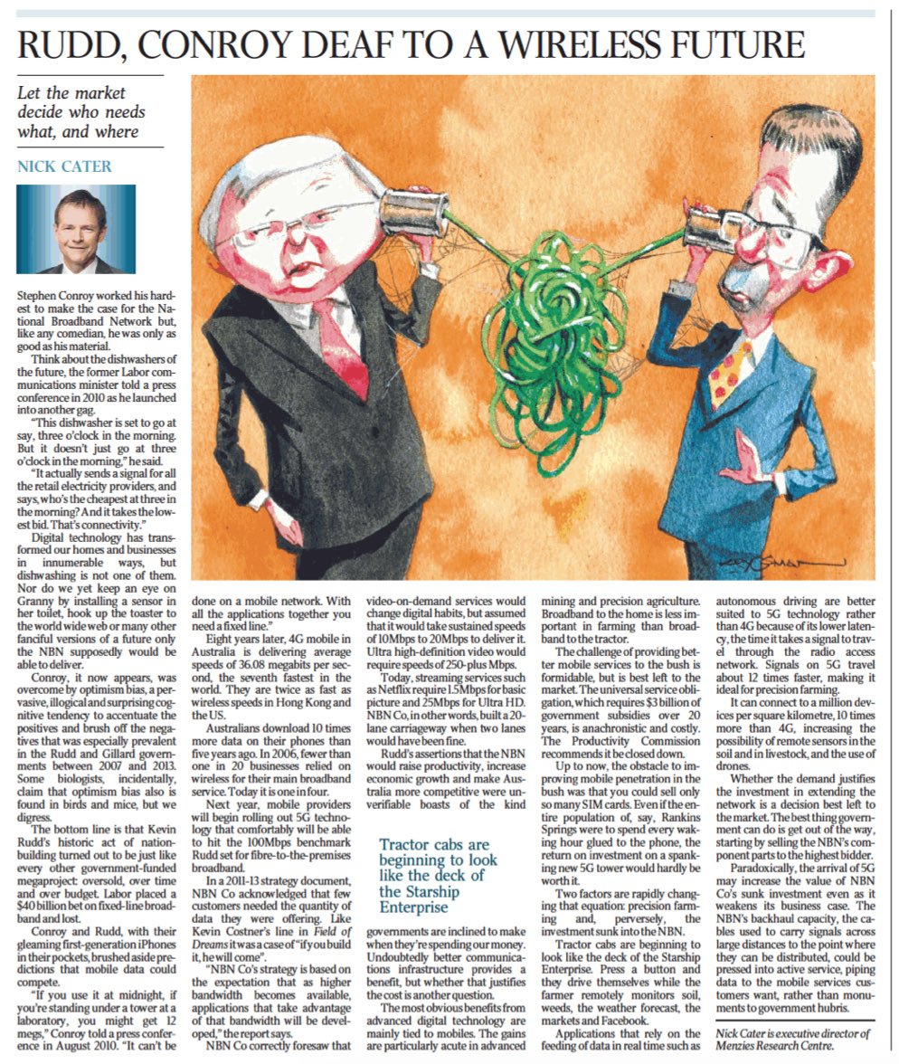 The Murdoch media, as usual, is full of crap. Murdoch campaigned to kill the NBN in 2013 with his coalition partner, Malcolm Turnbull, because it was a commercial threat to Foxtel. And then Turnbull killed the NBN (fibre to the premises) as instructed. That's why the NBN failed.pic.twitter.com/QOJwF8n3dt