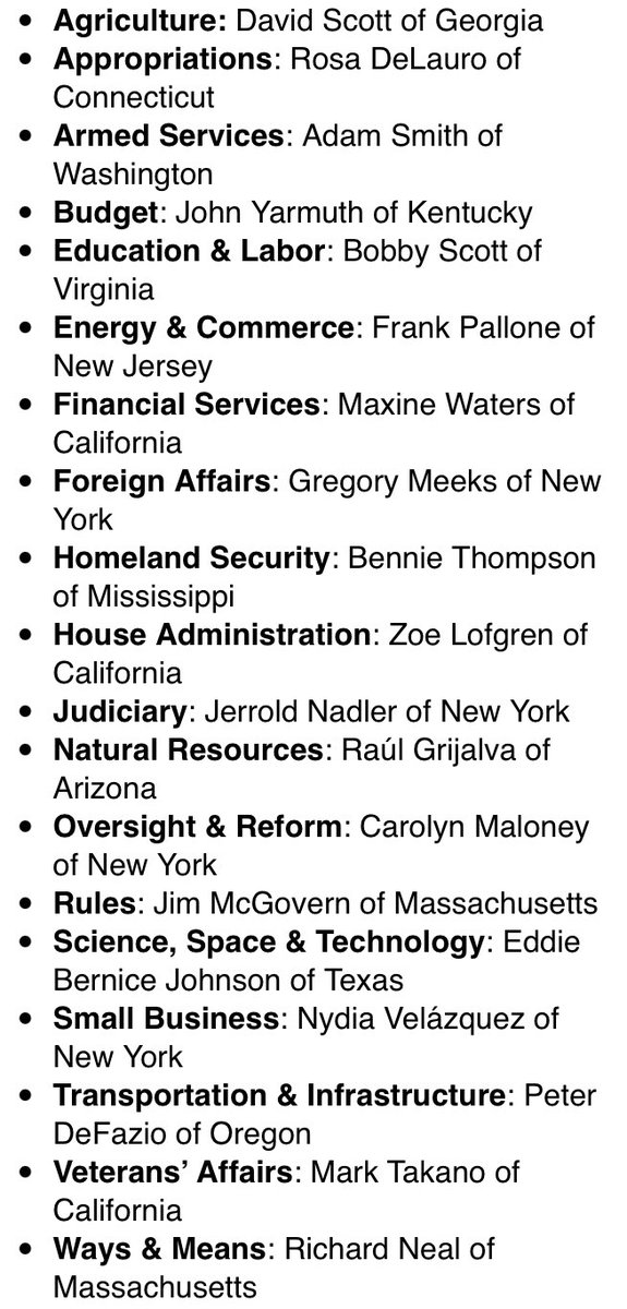 Speaker Nancy Pelosi announced that the Democratic Caucus has approved the following committee chairs for the 117th Congress.->pic.twitter.com/XIj3EJrE8g – bij Fox News Washington Bureau