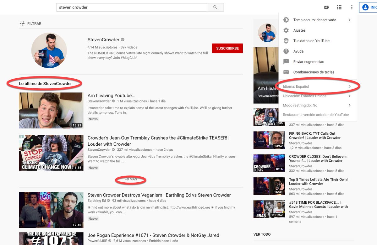 #Youtube2020ElectionBlacklist Captures taken today from Spain, no VPN, Chrome Incognito mode, just changing Youtube's location setting between US, Spain and UK pic.twitter.com/8vZwhNOgcY